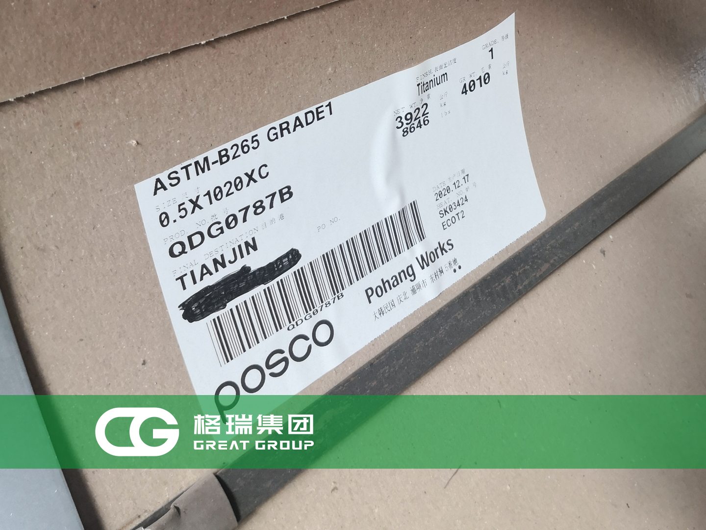 文章標題:格瑞集團:韓國浦項鈦板到貨 板式換熱器專用